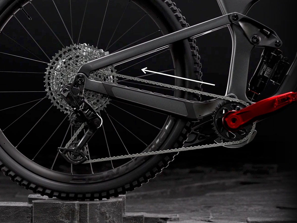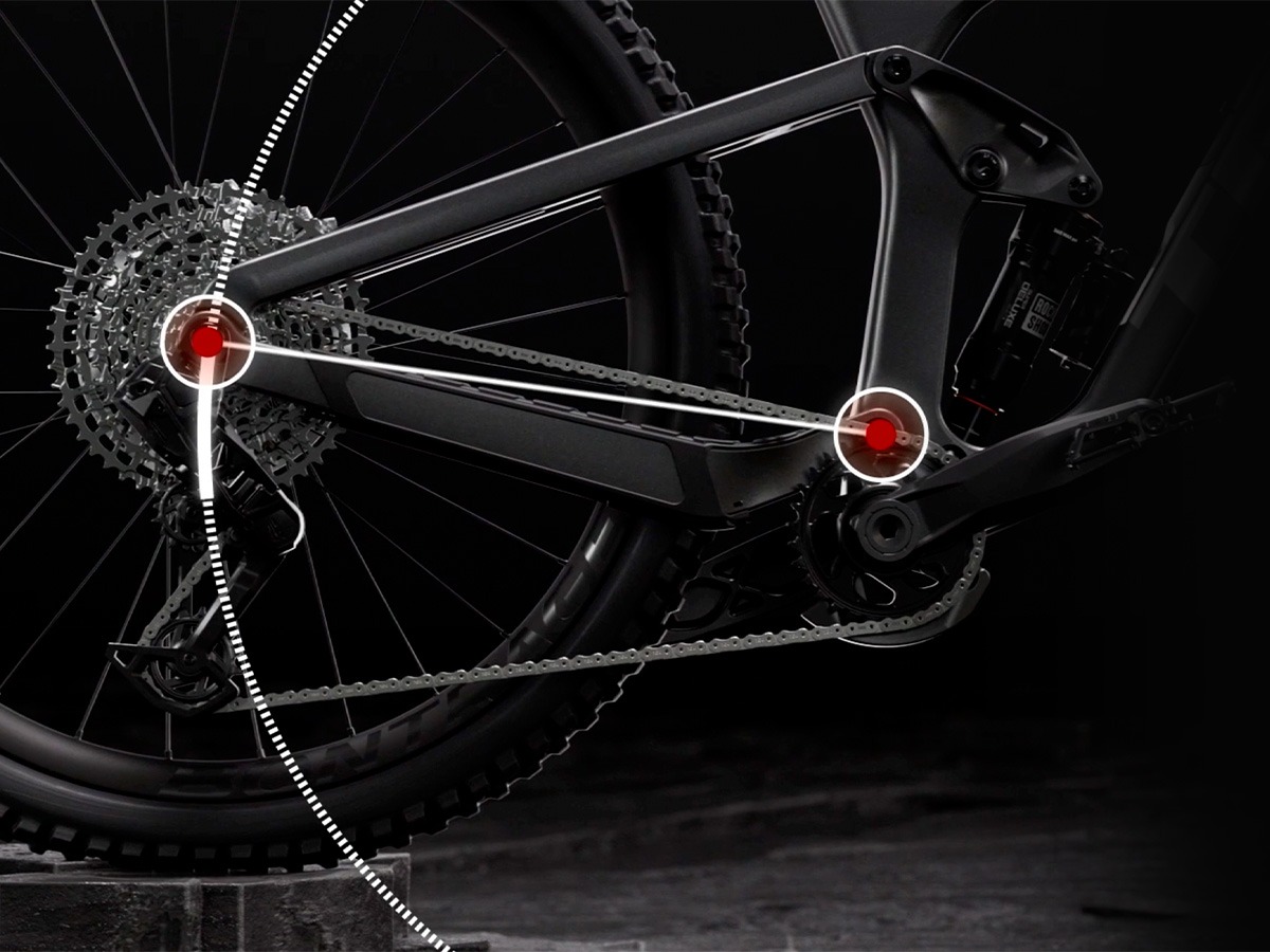 Because rearward axle paths increase the distance between cranks and cogs, the chain pulls back on the pedals. That causes pedal kickback that's harsh on your legs, and the chain tension can counteract your suspension movement.