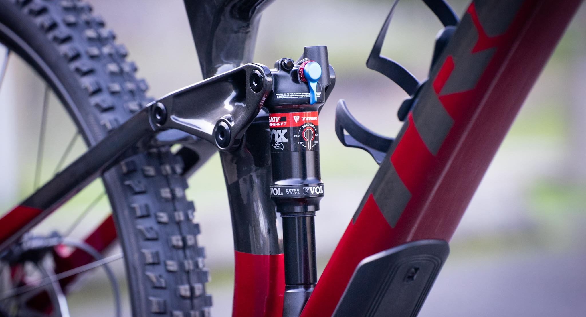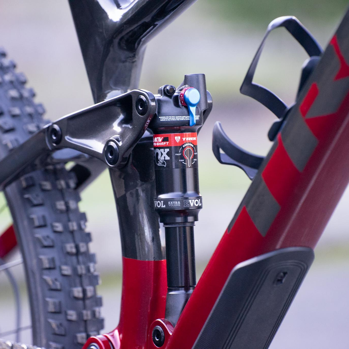 The Trek Fuel EX comes with a Reactiv Thru Shaft Fox shock with a built in thermal compensator to reduce overheating. Reactiv is Trek's proprietary pedaling platform to increase efficiency, and Thru Shaft is designed to increase small bump sensitivity.